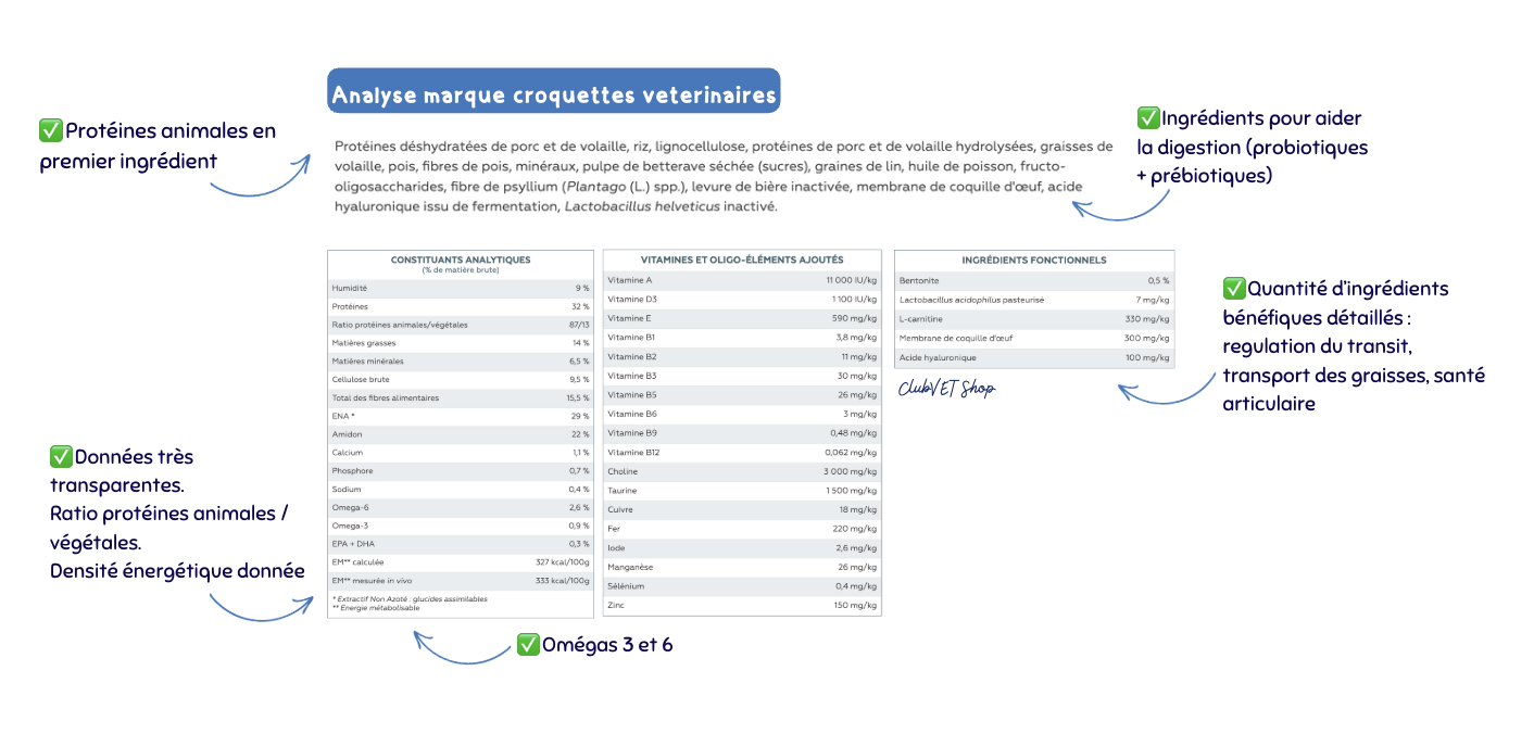 - Vétérinaire : formulées pour minimiser les troubles digestifs, très digestibles.